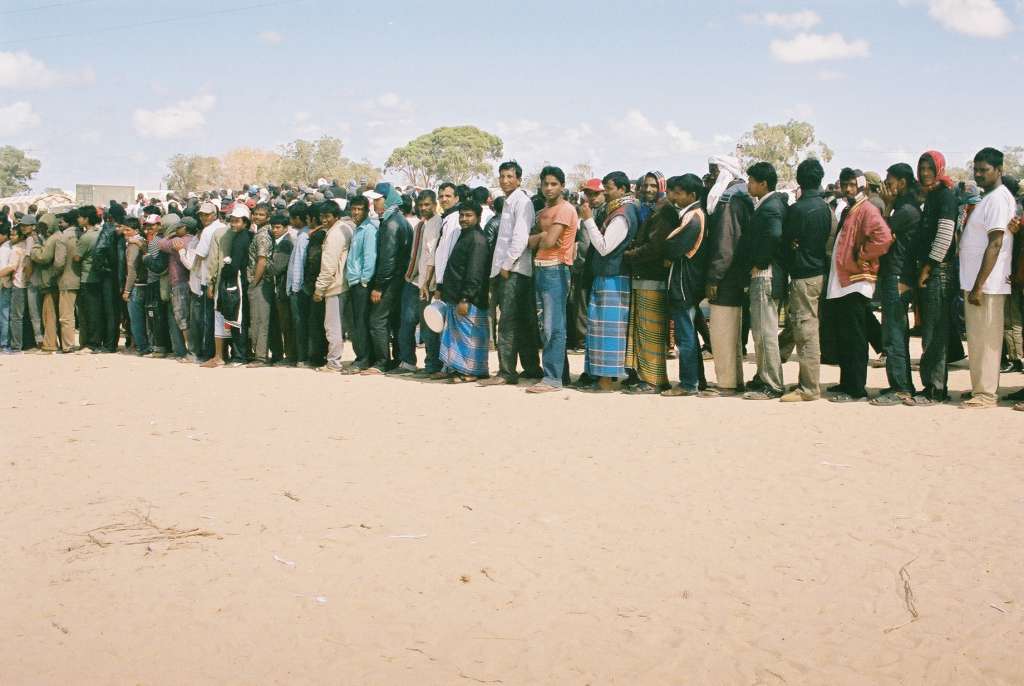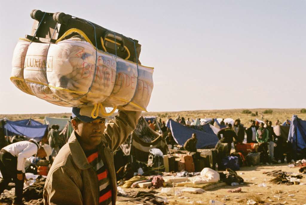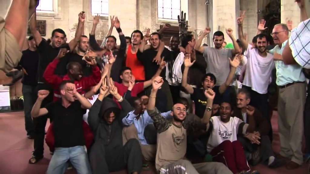 Bruxelles, église du Béguinage : des migrants organisent une grève de la faim pour obtenir des papiers. Un homme meurt. Tunisie, frontière libyenne, camp de Choucha, des réfugiés racontent l’horreur de la traversée du Sahara vers le Nord. Liège, dans un centre pour réfugiés, un homme raconte sa traversée de la Méditerranée sur une chambre à air. Trois moments d’une guerre pour survivre.
